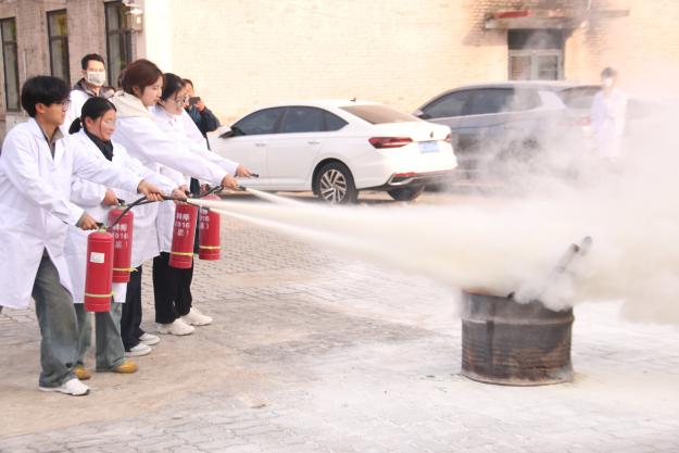 演练分三大模块有序开展。疏散逃生环节,各实验室负责人提前讲解注意事项及撤离路线,警报响起后,工作人员引导师生弯腰捂鼻,沿预定路线快速有序撤离至安全区域,过程紧张高效。心肺复苏环节,实验室工作人员详细讲解操作流程、动作要领及注意事项,随后指导学生实操,纠正动作细节,助力师生掌握急救技能。灭火演练现场,安全工作处工作人员讲解灭火器适用场景及操作步骤,重点演示“提、拔、握、压”动作,学生依次实战操作,提升初期火灾处置能力。